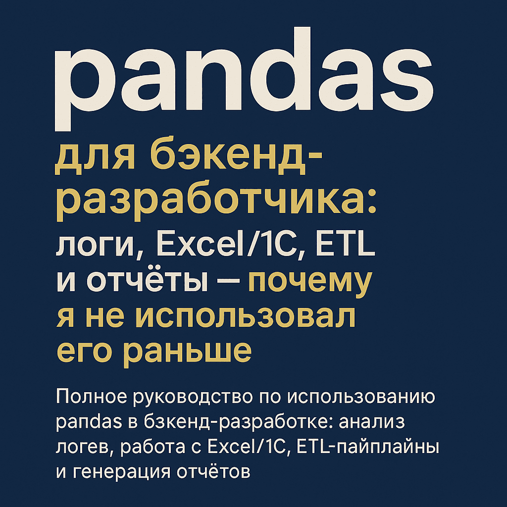 Полное руководство по использованию pandas в бэкенд-разработке: анализ логов, работа с Excel/1С, ETL-пайплайны, валидация данных и генерация отчётов. Практические кейсы с кодом и реальной историей из практики.